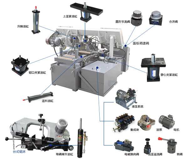 2014年山東最大的一家?guī)т彺补窘?jīng)朋友介紹,并查看了我們的公司網(wǎng)站等相關(guān)信息后,聯(lián)系到我們,希望我們能為他們?cè)O(shè)計(jì)定做帶鋸床液壓系統(tǒng)配件。因?yàn)樗麄児編т彺仓饕猿隹跒橹鳎|(zhì)量要求高,但當(dāng)?shù)夭少?gòu)的液壓配件質(zhì)量并不是很穩(wěn)定,給他們售后也帶來(lái)了諸多不便。而他們主要的質(zhì)量問(wèn)題就出在升降油缸。帶鋸床液壓缸中,最關(guān)鍵的就是升降液壓缸,如材料或工藝沒(méi)達(dá)到要求或者安裝不注意出現(xiàn)問(wèn)題,則升降機(jī)構(gòu)會(huì)出現(xiàn)內(nèi)泄露機(jī)器自動(dòng)會(huì)下降現(xiàn)象,抖動(dòng)現(xiàn)象等。缸筒材料若是未經(jīng)過(guò)珩磨或滾壓處理的無(wú)縫鋼管,內(nèi)壁光潔度不夠,會(huì)產(chǎn)生活塞、缸筒、密封件配合不良等各種問(wèn)題產(chǎn)生。而壁厚很薄的缸筒,當(dāng)液壓油溫高了,缸筒容易熱脹變形,導(dǎo)致漏油,使用壽命較低;活塞桿作為油缸主要原材料之一,行業(yè)標(biāo)準(zhǔn)鍍鉻層厚度是2~3絲,部分油缸廠家為降低成本,會(huì)使用1絲不到的活塞桿,短期看不到問(wèn)題,但是大大降低油缸使用壽命。