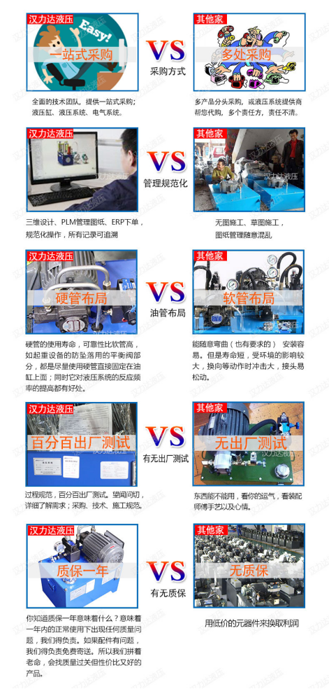 方案確認(rèn)后,李總向我們詢問我們公司產(chǎn)品的質(zhì)量和價格。。宋先生給李總介紹了漢達(dá)的公司歷史,漢力達(dá)專注液壓行業(yè)19年了,油缸和液壓泵站一起配套提供的,一站式采購,比較方便,出了問題也只要找到漢達(dá)就行,不需要多頭聯(lián)系供應(yīng)商。而且標(biāo)準(zhǔn)液壓站的設(shè)計、加工流程都是非常規(guī)范的,圖紙PLM存檔,客戶資料EPR存檔,做過一次的所有記錄都有,以后照著那份做,液壓經(jīng)銷門店的液壓站便宜的原因之一是在于工人現(xiàn)場組裝,沒有圖紙沒有相關(guān)管理成本。另外漢力達(dá)的標(biāo)準(zhǔn)液壓站采用的是硬管布局,外觀精美,使用壽命長,同時它對液壓系統(tǒng)的反應(yīng)頻率的提高有好處。我們的產(chǎn)品質(zhì)保一年,避免售后成本高,我們的供應(yīng)商都是長期合作質(zhì)量穩(wěn)定的合作伙伴李總表示他們也是一樣,做任何一款產(chǎn)品,質(zhì)量性能的保證,才是客戶想要的。