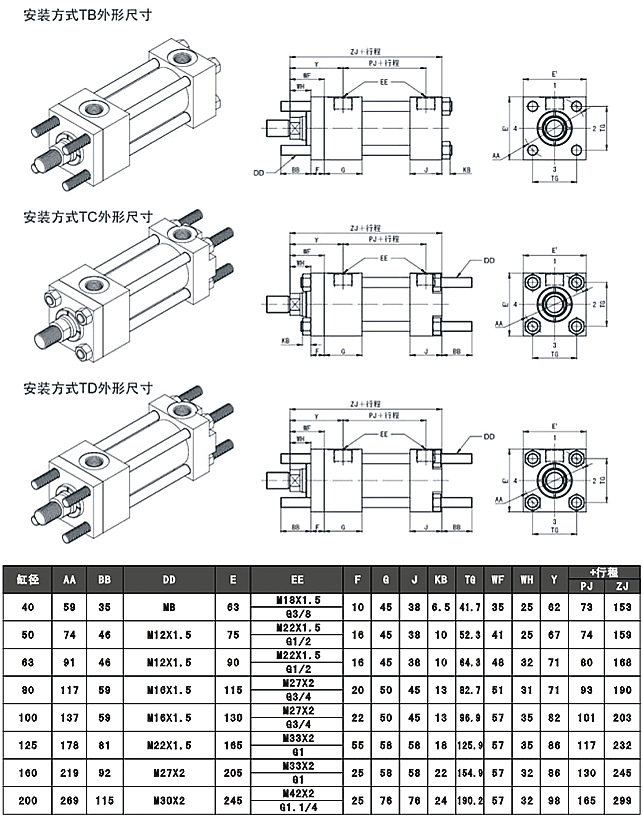 以下為YGD標(biāo)準(zhǔn)液壓缸TB\TC\TD四拉桿液壓缸具體參數(shù),客戶(hù)可按照以下圖表來(lái)選型。