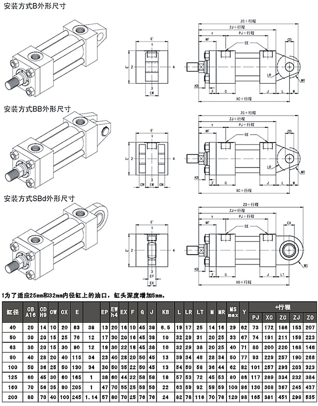以下為YGD標(biāo)準(zhǔn)液壓缸B\BB\SBd四拉桿液壓缸具體參數(shù),客戶可按照以下圖表來(lái)選型。